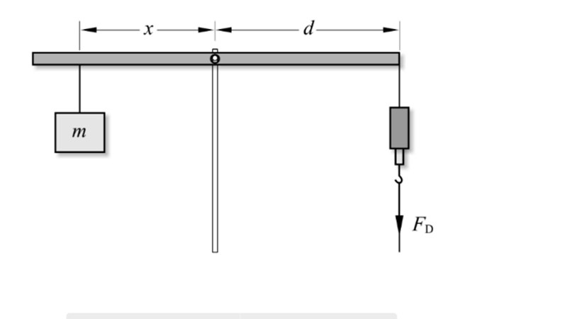 Jag vet att f(x)=-1,25x+1,0 : som beskriver hur dynamometerkraften FD ändras när viktens läge x varieras (se bild).