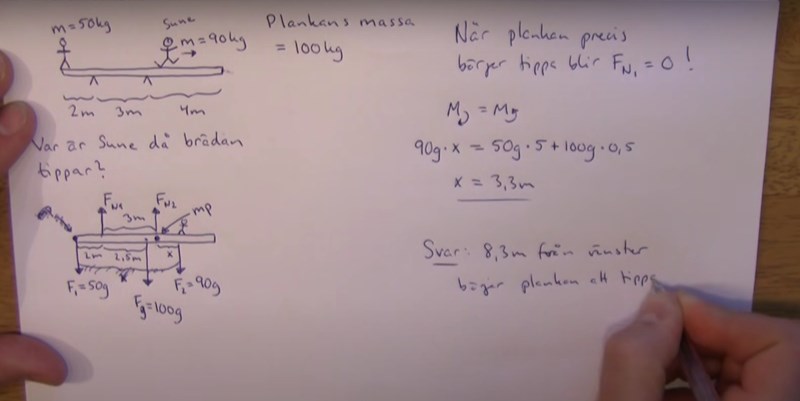 Du sitter ensam längst ut på en gungbräda, Antag att plankan är mycket lätt, och mycket styv.