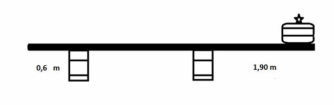 När paketet är så tungt att plankan nästan tippar över, balanserar den på högra stödet. Kraften på vänstra stödet är då noll.