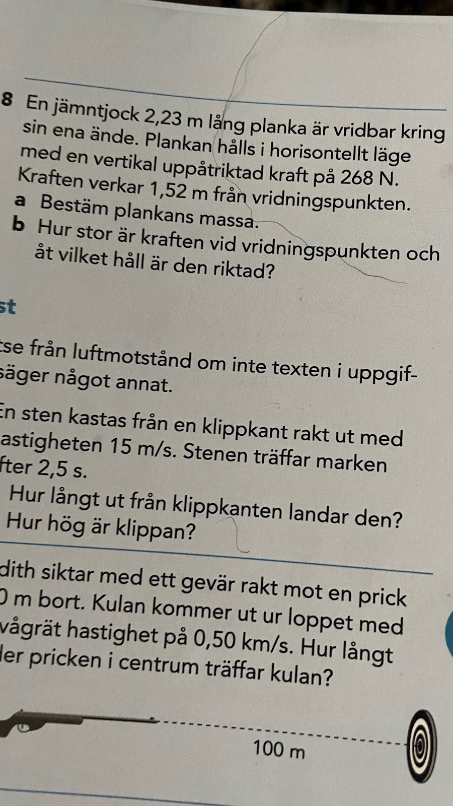 fick att 8a är 37,2 kg men förstår inte fråga b. Så har jag räknat men det korrekta svaret är 97N uppåt.