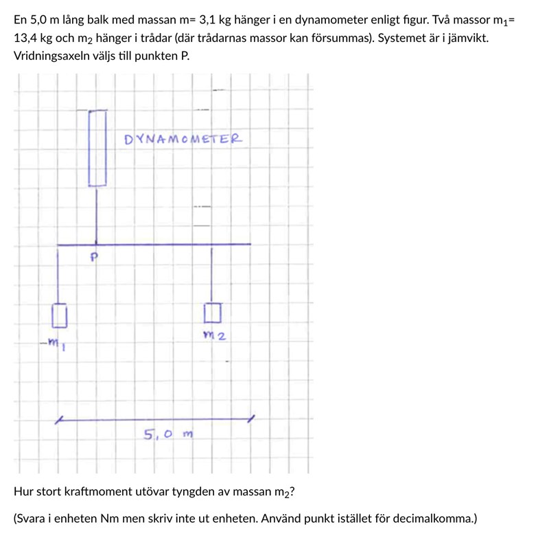 Tänker att har ett kraftmoment kring som är lika stor som: