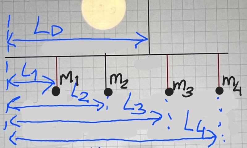 1. Rita en egen skiss där du tydligt satt ut storheter L1, m1, L2, m2 och så vidare. Inga numeriska värden här. Använd gärna mitt förslag i svar #7 som mall.