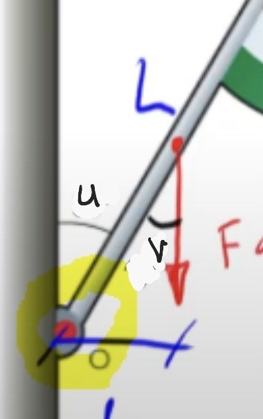Eftersom den röda pilen är parallell med väggen så är dessa vinklar lika stora, vilket betyder att vinkeln v är lika med 30°.