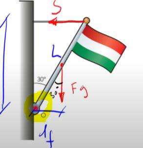 Är du med på att om vinkeln mellan vägg och flaggstång är 30° ovanför flaggstången så är vinkeln mellan vägg och flaggstång 150° under flaggstången, se bild?