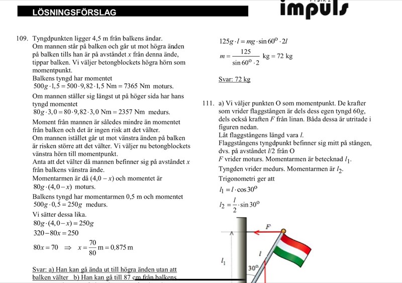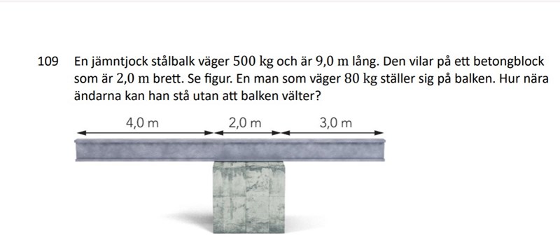 fråga nummer 109… i den första beräkningen använder de sig av l = 1,5 ? Men jag hade nog istället använt mig av att l = 4 då han befinner sig på den högra änden. Tacksam för hjälp!
