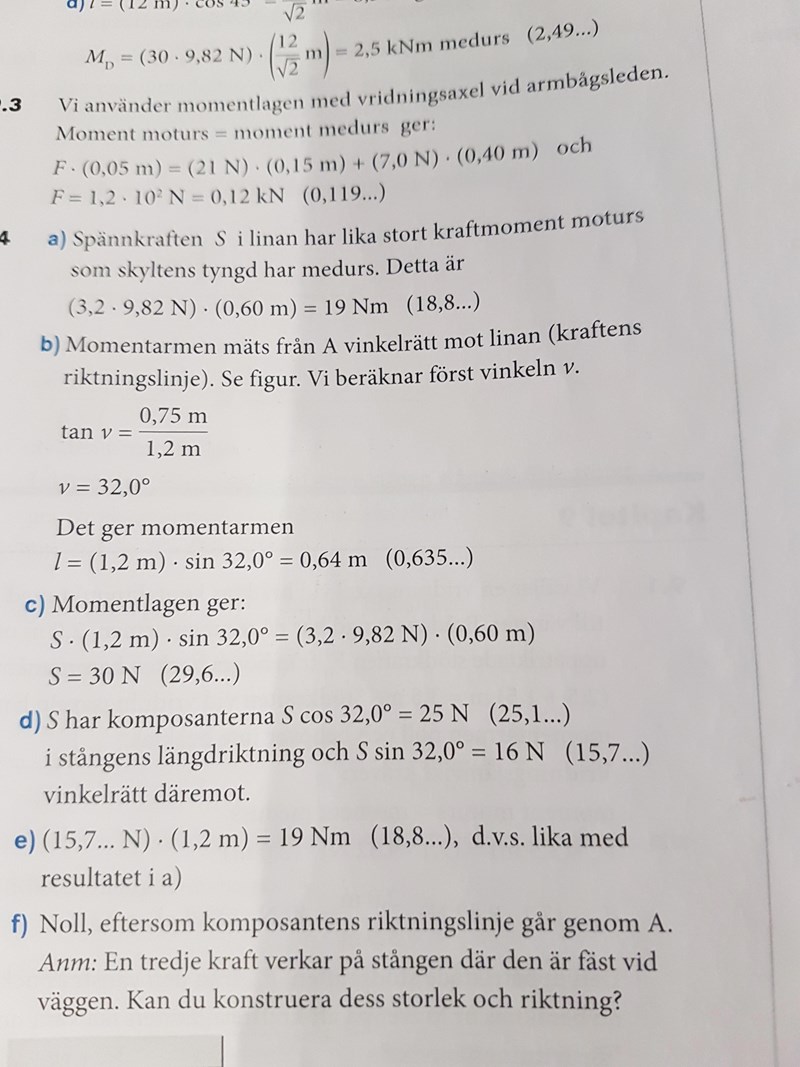Det är b jag har problem med. Först och främst vilken momentarm syftar de På?