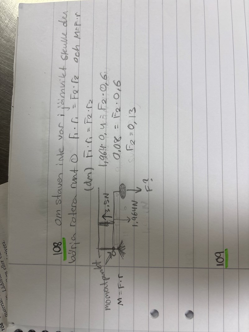 Peter skrev:Ja, r2 blir 1, men du har bara 2 krafter med i din momentjämviktsekvation. Dynamometern drar ju också i staven t.ex.