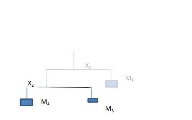 När man fäster tråden gäller det att vridmomenten från M2 och från M3 tar ut varandra. Hävarmen för M2 är x2, enligt figurens beteckningar.