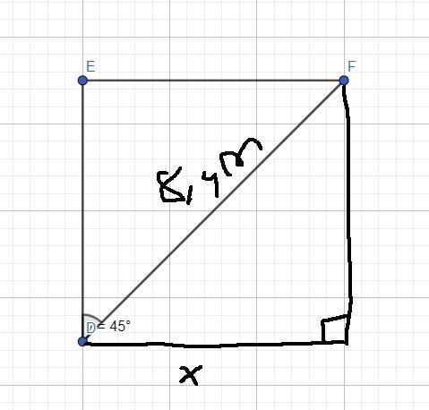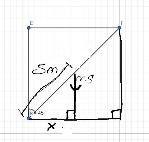 Okej, men kraften för mg, gör jag rätt i att rita den triangel på bilden som jag skickade med i förra posten för att räkna ut momentarmen x som på bilden ? För visst blir vinkeln även där 45. Jag menar den är varken i den verkliga triangeln vi har och jag ritade till den för den bildade en rätvinklig momentarm mot rotationspunkten. Hade man kunnat göra en linje från punkten E till där kraften mg verkar, 5m från punkten A och räkna på den triangeln som bildas istället om man ville?