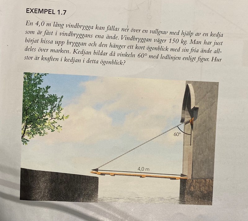 här är frågan och hur lösningsbladet ritade ut krafterna samt vinklarna: