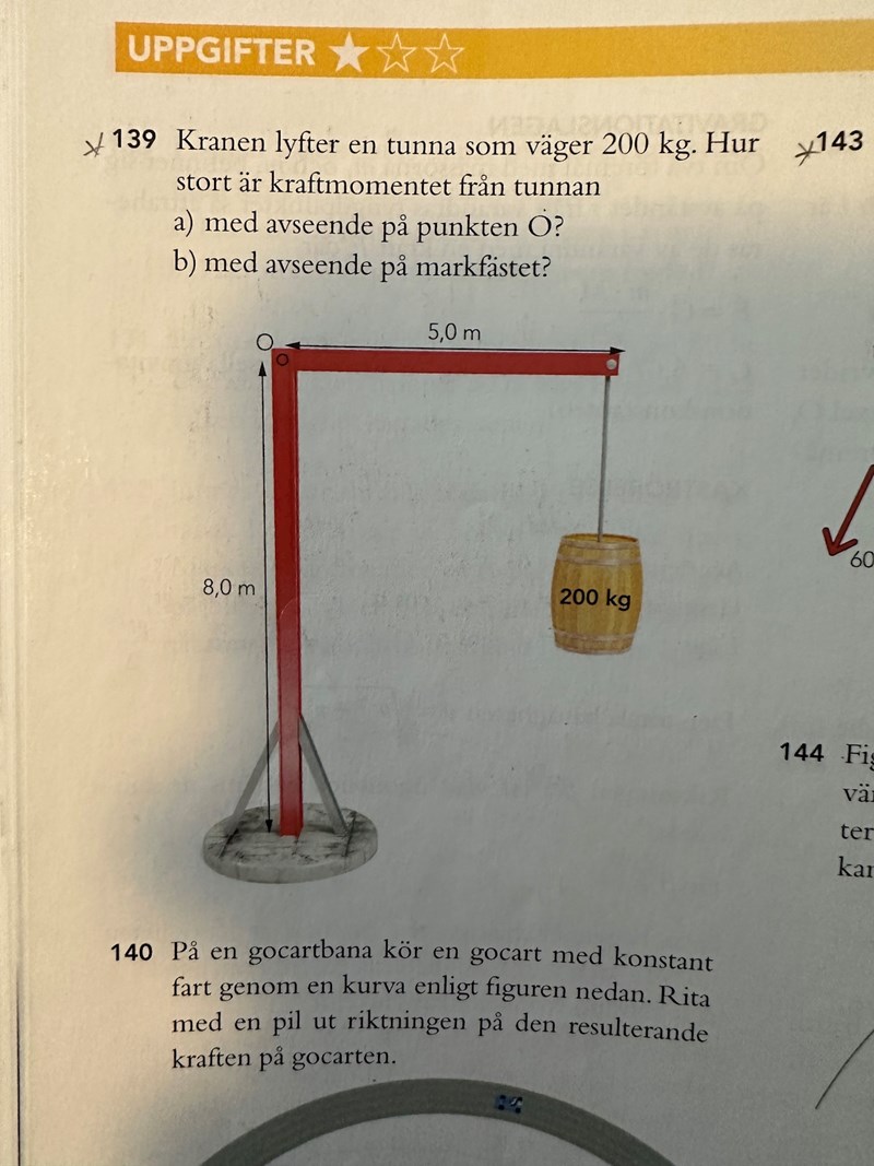 Momentarmen 5 m, kraften är 200*g Alltså blir momentet runt punkten O