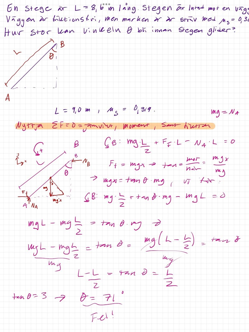 Kraftmoment och friktion: stege mot vägg
