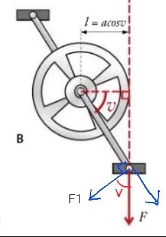 "Visa att du kan använda den mot trampaxeln vinkelräta komposanten av kraften F i fig. 5b och få samma resultat för kraftmomentet". Menar dem att man ska uttrycka kraftmomentet med sinus istället? sin v = (a*cosv)/a, dvs. sin v = cos v??