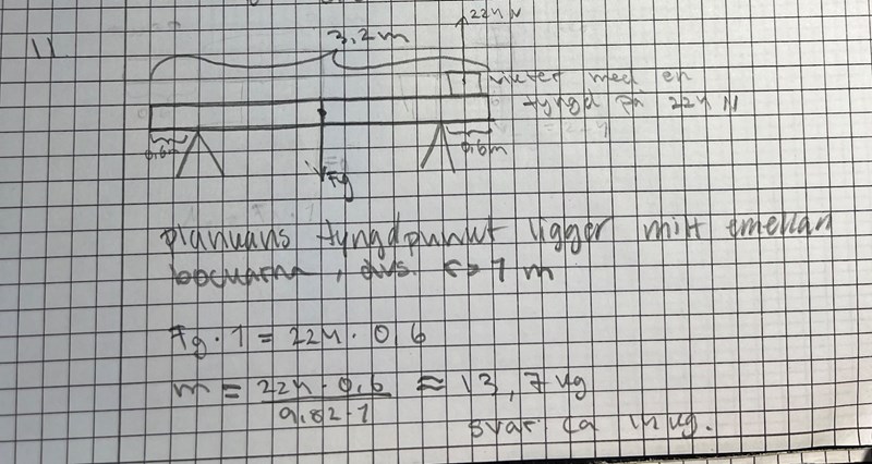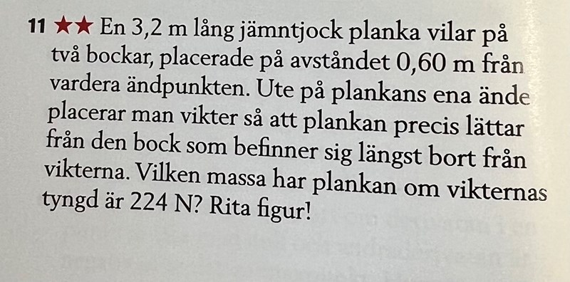 "En annan fråga är även varför plankans tyngdpunkt är mellan bockarna och ger en längd på 1 m istället för mittpunkten på hela brädan vilket ger en längd på 1.6 m? "