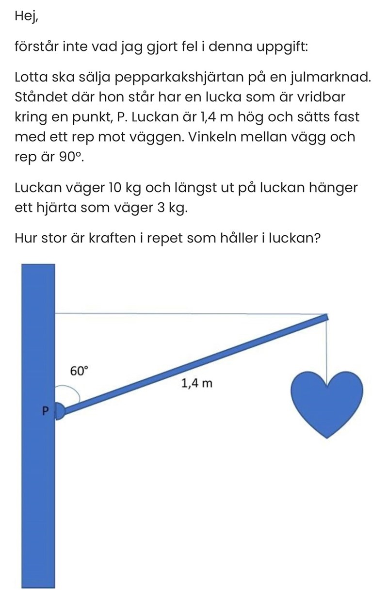 Kraftmoments uppgift: hängande föremål med en vinkel