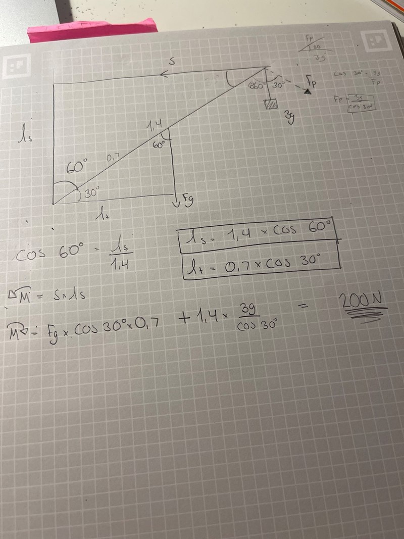 Du har dessutom likhetstecken mellan det högervridna momentet och ditt resultat som är 200N, det är två skilda saker.