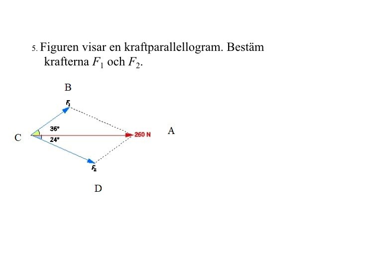 Jag kan väl börja med F1. Vi har 36 grader på ena sidan och 24 på den andra vinkeln B är 120 grader.