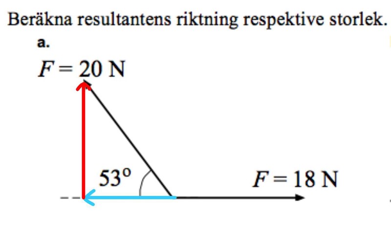 Jag kan dela upp kraften med 20 N i dess komposanter, med förstår inte riktigt hur jag ska kunna beräkna resultantens riktning och storlek.