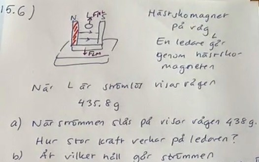 Om jag skulle gissa varför den är uppåtriktad är det för att det är hästskomagnetens vikt som påverkar vågen och därav måste det vara en kraft på hästskomagneten som påverkar vågen ytterligare. Dvs att ledaren borde ha en lika stor men motriktad kraft och därför är den uppåtriktad?