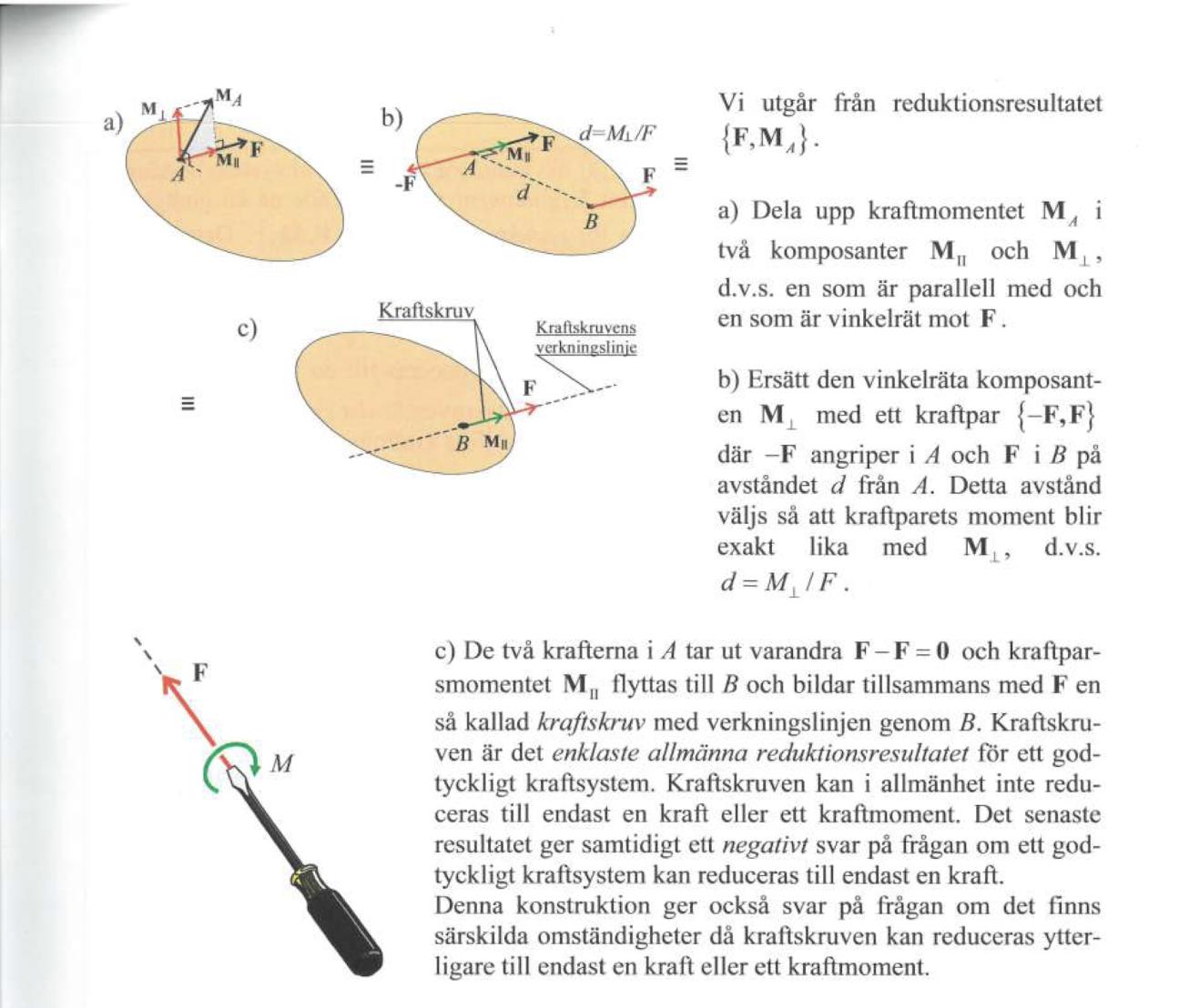 Hej! Jag förstår allt förutom en grej i hur man hittar en kraftskruv. Varför får man flytta M|| hur man vill? Jag vet att ett kraftparsmoment är oberoende av angripspunkten, men kraftparsmomentet här hör ju till M⊥.
