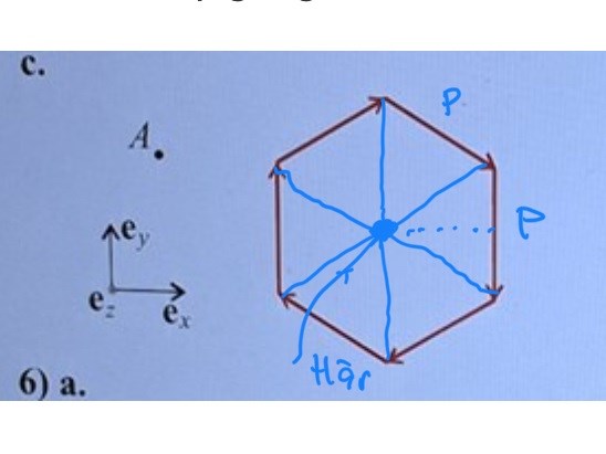 Alla sex krafterna ger samma moment kring O. Så det räcker att beräkna momentet för en och multiplicera med sex.