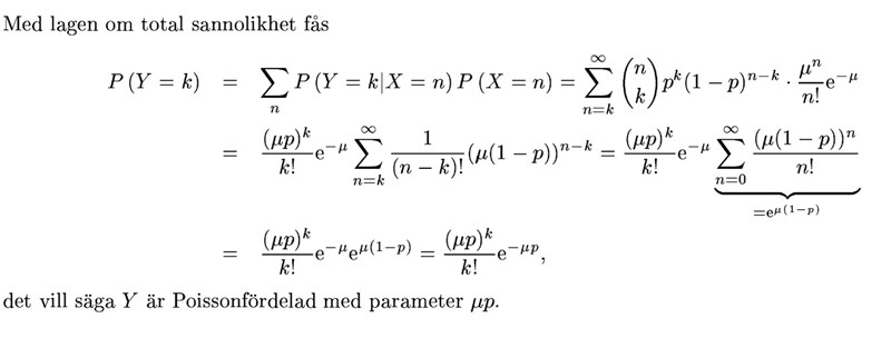 Om jag förstår det rätt är X Poisson-fördelad med parameter my och X givet N är binomial-fördelad med parametrar N och p?