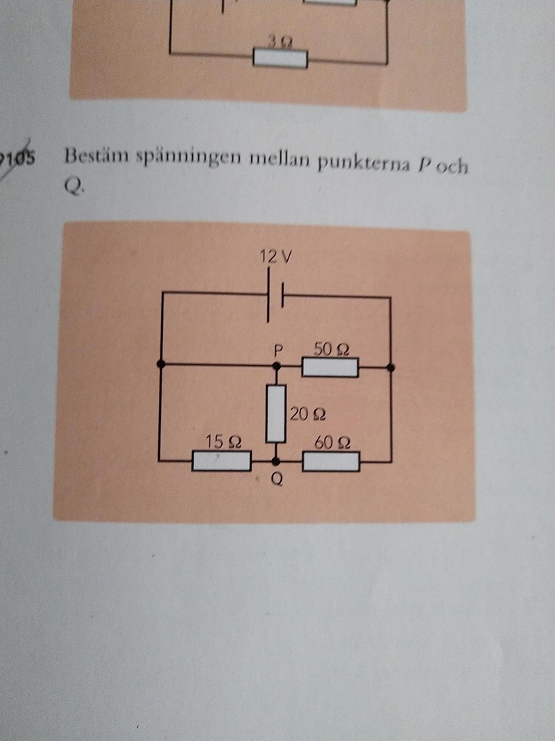 Det enklaste för dig är att du potentialvandrar med kirchoff runt de olika kretsarna, och summerar strömmar i noderna. När du väl vet strömmen genom 20Ohms-motståndet så kan du beräkna spänningsfallet mellan P och Q.