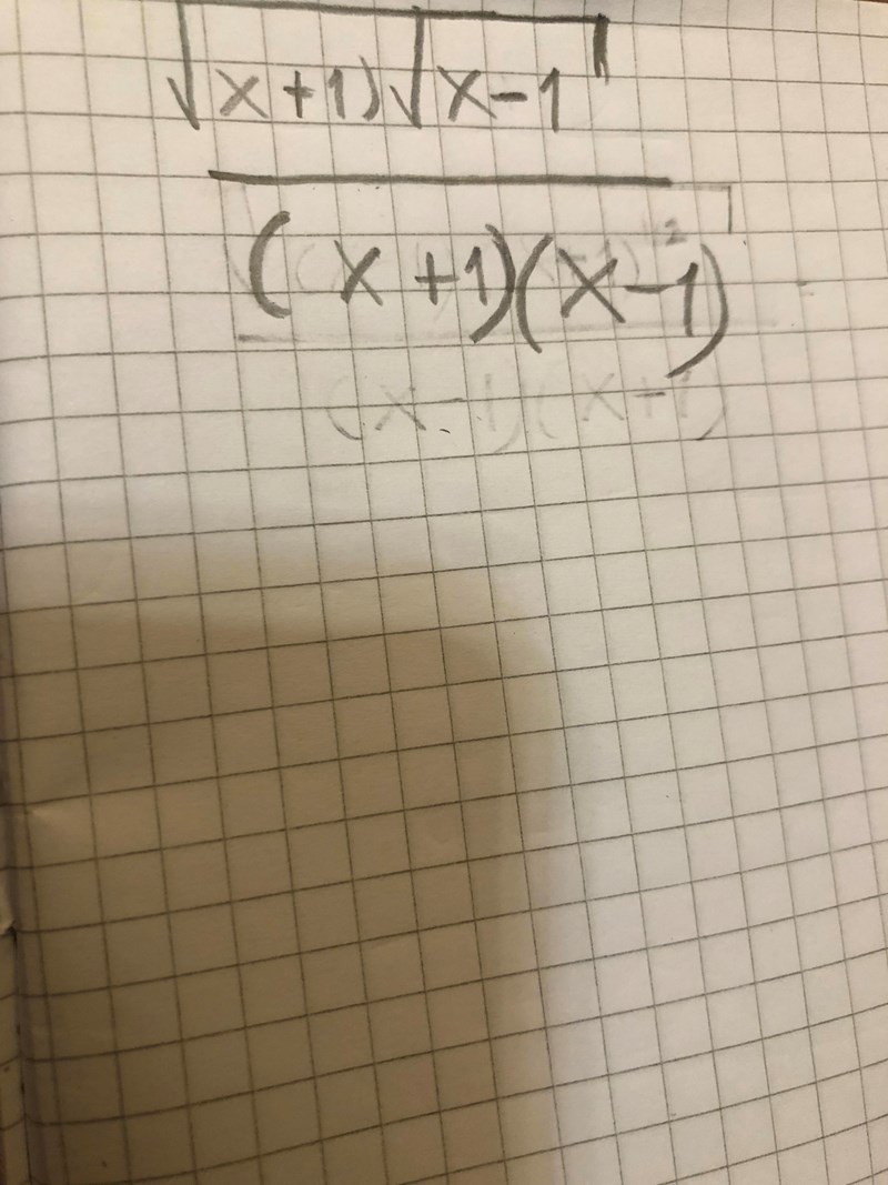 Hur kan jag påbörja uträkningen/förenklingen av det här krångliga uttrycket.  Jag tänker att jag kan upphöja roten ur x+1 med 1/2 . Under rottecknet blir det (x-1)(x+1)^1/2
