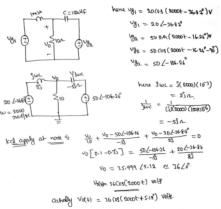 vg2 = 50*sin(2000t - 16.26°)=50cos(2000t-16.26-90)=50cos(2000t-106.26)? ty sin(x+90)=cos(x)