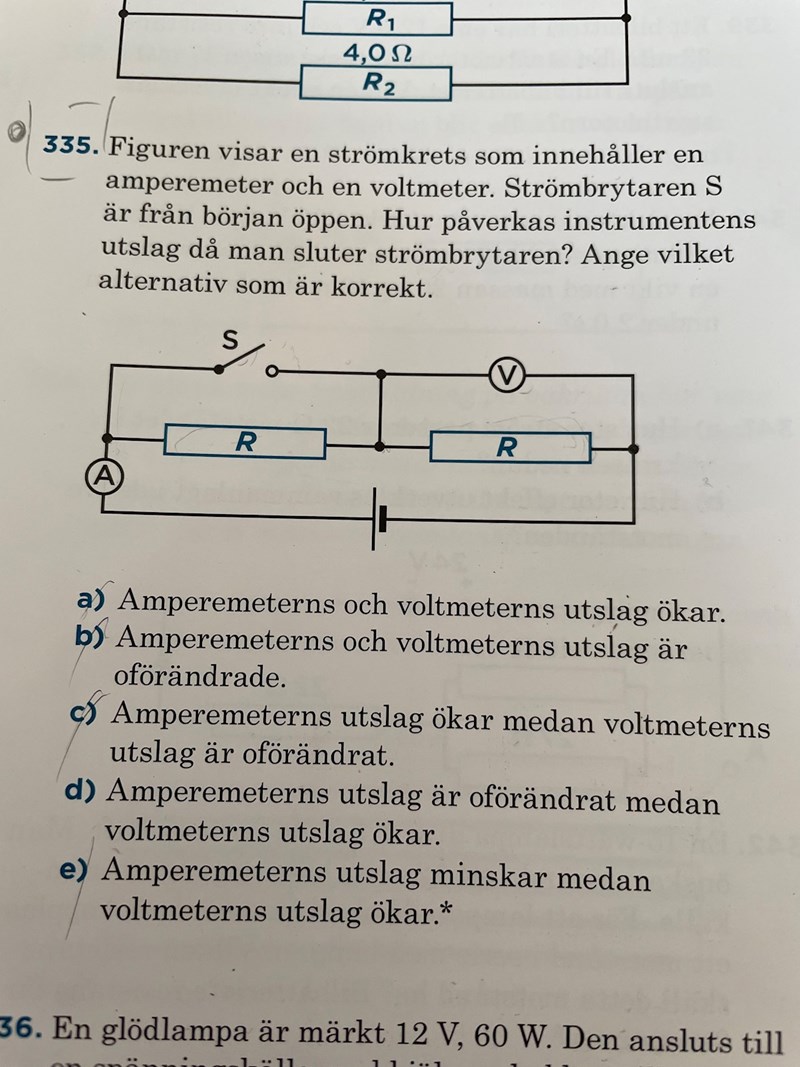 Fråga 1 jag hade vad händer med strömmen när vi tar bort ett motstånd och vi har samma spänning nu som låg över två motstånd tidigare. Självklart ökar då strömmen.