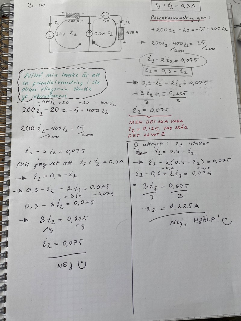 Jag har försökt vända ut och in på den här frågan otaliga gånger så nu ger jag upp och delar med mig av problemet här. Det rör fråga 3.14 samt postar jag även mina beräkningar, förvisso möjligen felaktiga, men de kanske kan ge en hint om min tankegång iallafall :)