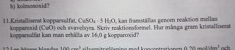 Fråga 1: Vad betyder formeln CuSO4·5H2O CuSO_4\cdot 5H_2O i denna uppgift?
