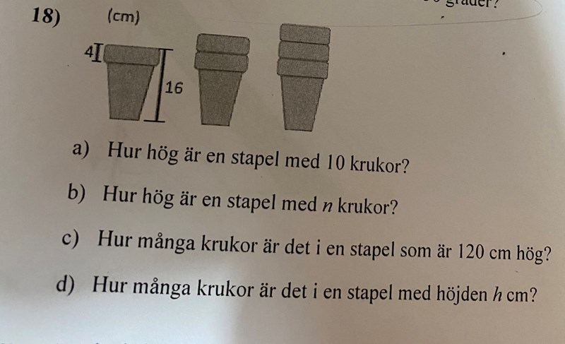 Hur många gånger har man ökat på höjden från en kruka om man slutar med n krukor?