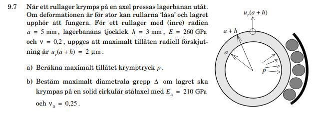 Okej, jag fick formeln från min kursbok, där hör den till fallet tjockväggigt tryckkärl. Jag antog att man kunde använda formlerna för spänningen i tjockväggigt tryckkärl i både radiellt led och i ringled för just den här uppgiften (inte z-led då den blir noll).