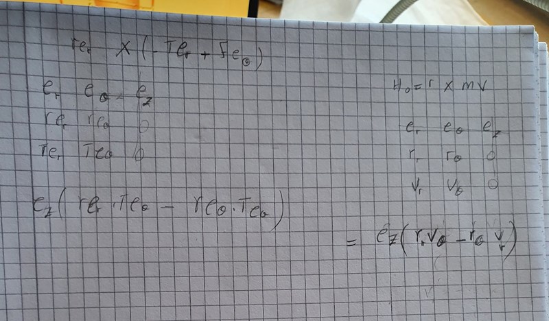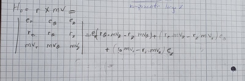 I cylinderkoordinater gäller det att . Så , alltid. Här verkar det vara ett plant problem så man har valt rz = z = 0.