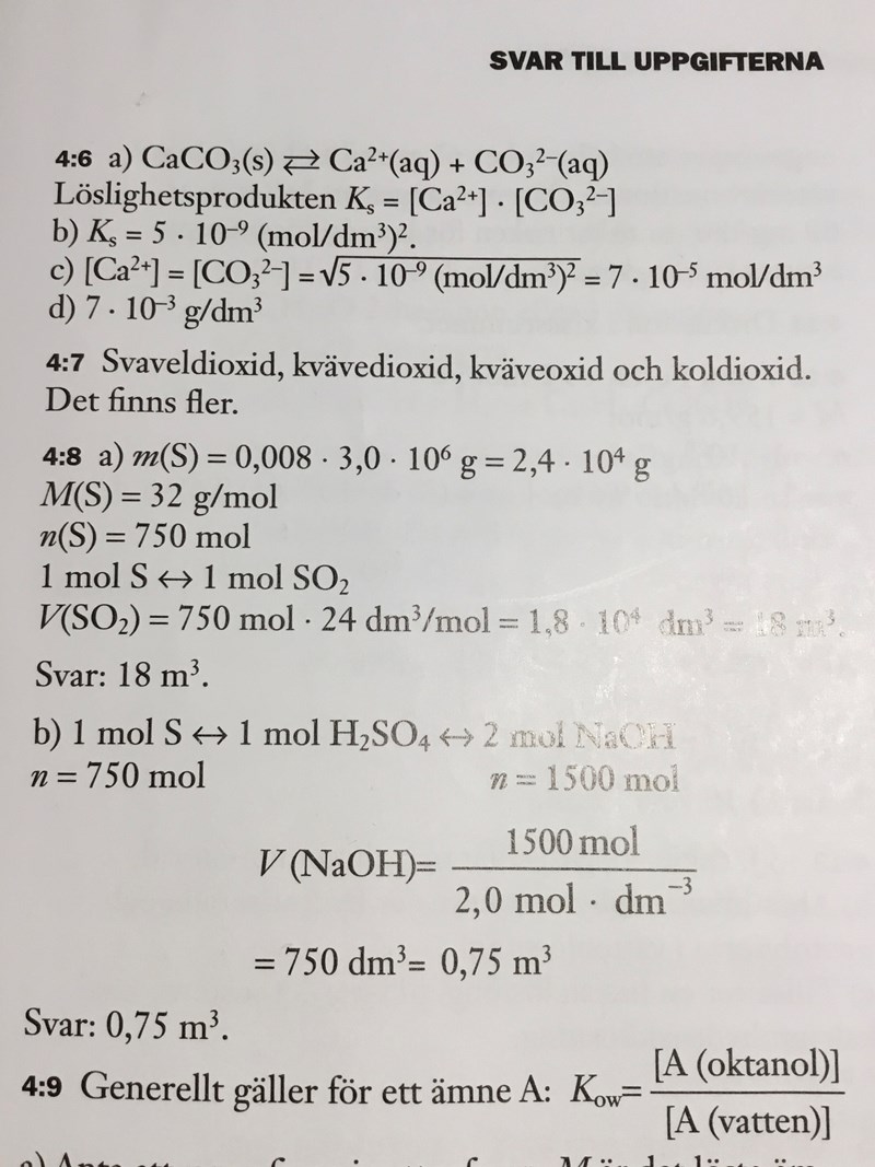 Förstår inte bara det sista steget 4:6 d) omvandla till g/dm3 det ser ut som om man bara har tagit • 100 på slutet, varför?