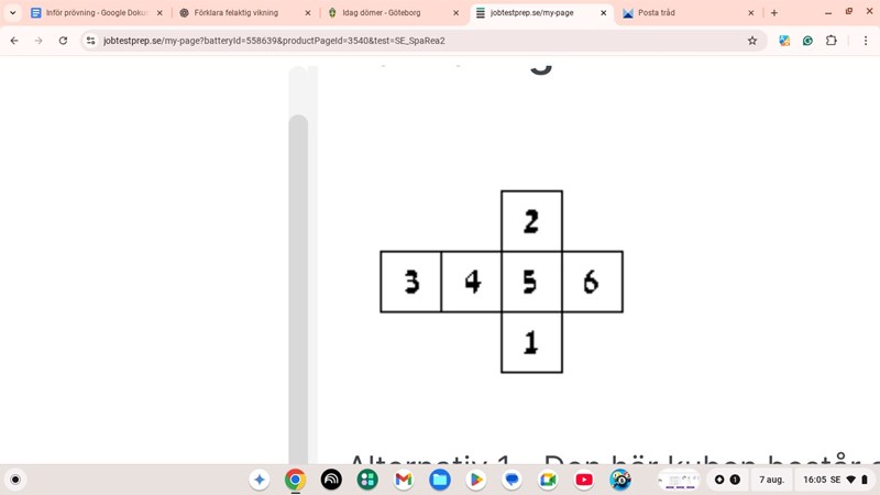 När du viker ihop pappret med siffror kommer 6 att ha gemensam kant med 5 (självklart) och med 1 när du viker. När du fortsätter vika ihop formen till en kub kommer 6 också att ha gemensamma kanter med 2 och 3.