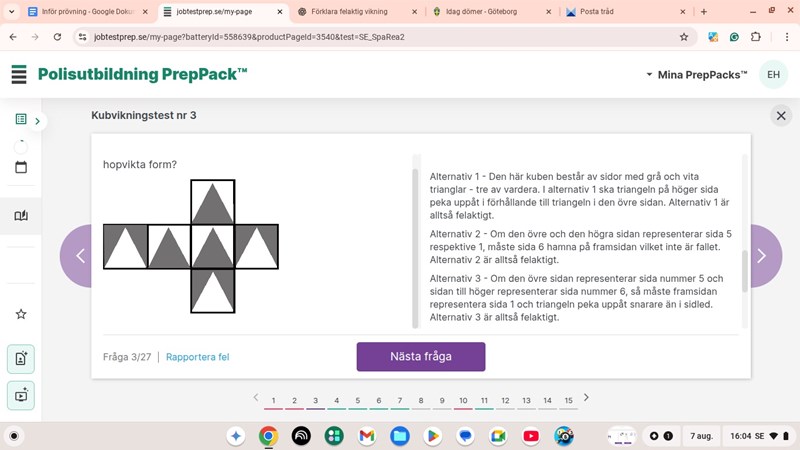 Asså, på alternativ två så pekar den vita mot den svarta triangelns bas. Detta gör då att den vita triangeln blir blir nummer ett, och svarta triangeln på högersidan till nummer 5. Men enligt förklaringen behöver framsidan isåfall vara nummer (6)?. Hur är det ens möjligt? Nummer 6 är en vit triangel som är åt höger om nummer 5, men ändå säger dem att nummer 6 ska vara på framsidan (alltså vänster om 5)?