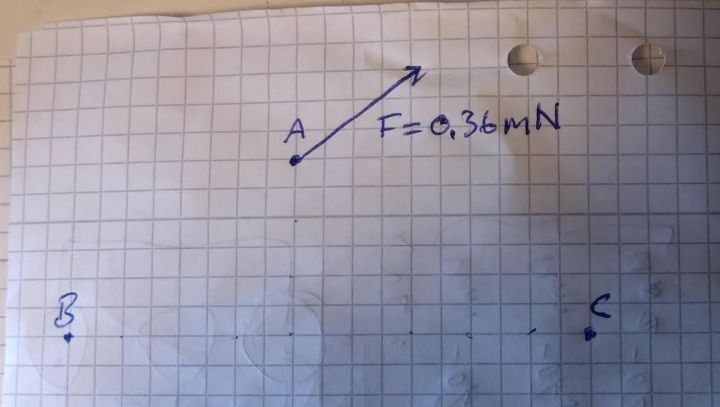 Om kraften på A från B ser ut som jag ritade, hur ser då kraften på A från C ut?