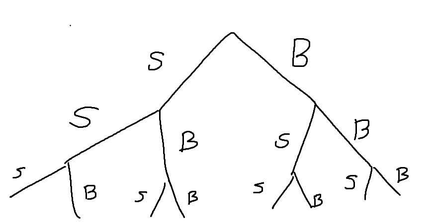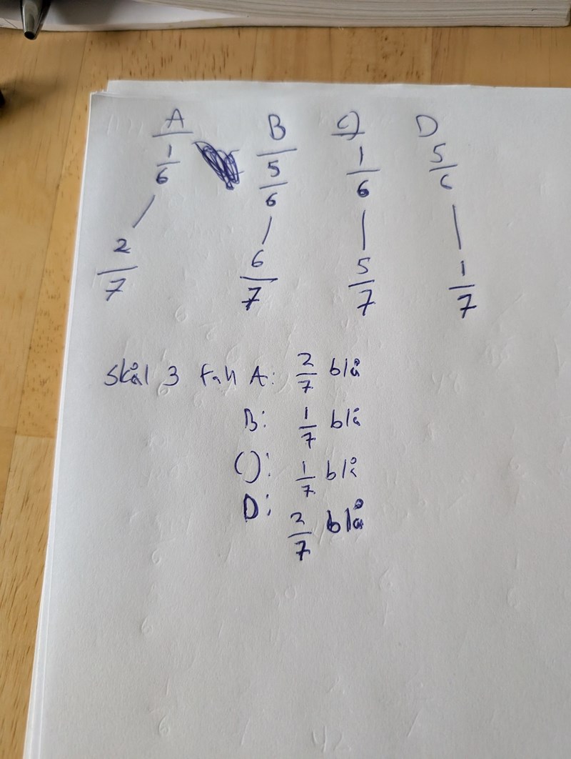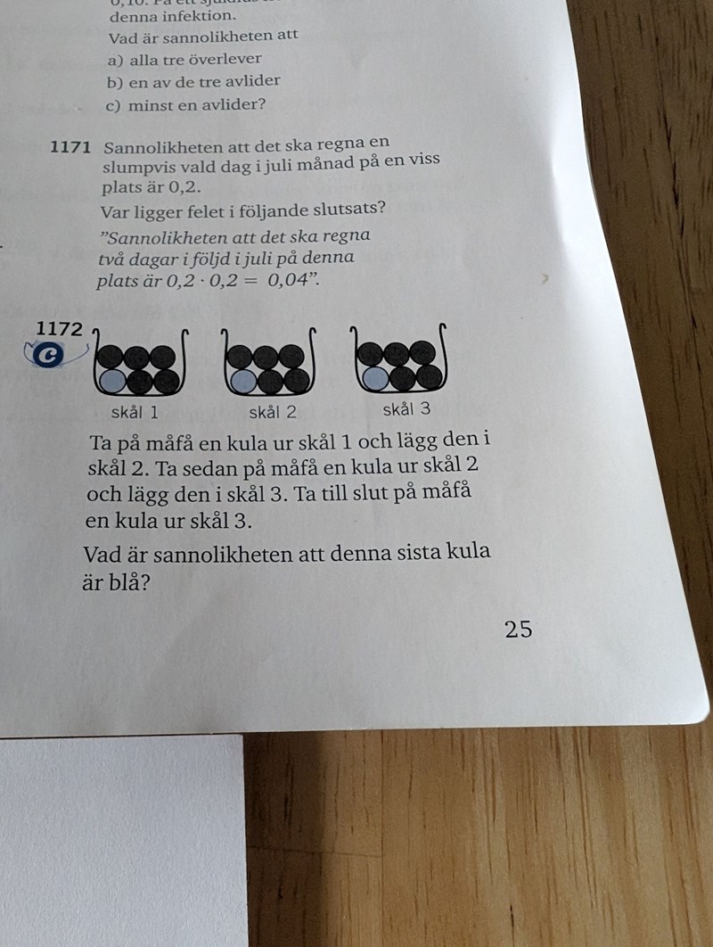 Jag skulle föreslå ett sannolikhetsträd för den här uppgiften. Har du ritat sådana tidigare?