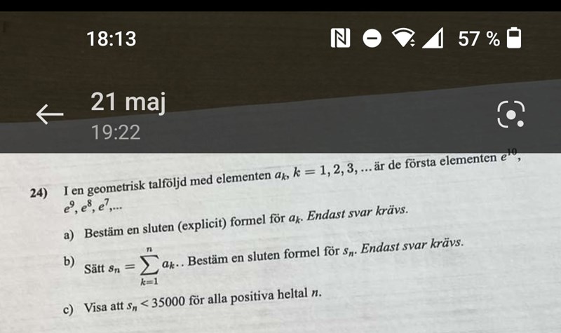 För b, börja med att skriva ut summan och se om du får något som du kan fortsätta med. Säg till om du behöver vidare hjälp.