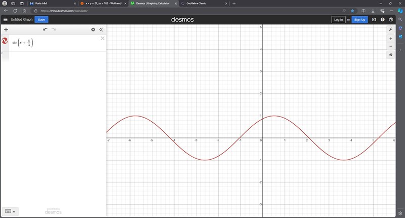 Smaragdalena skrev:shkan skrev:Frågan: Kurvan y= sin(x + pi/3) har en tangent där kurvan skär y-axeln. Tangenten begränsar tillsammans med koordinataxlarna en triangel. Kurvan delar denna triangel i två delar. Bestäm förhållandet mellan den större och den mindre delens area.