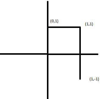 där är linjestyckena från (0,1) till (1,1) och från (1,1) till (1,-1).