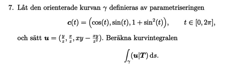 Jag behöver hjälp med att förstå vilka vägbyten som är tillåtna för kurvintegraler som den ovan. Rotationen av vektorfältet och vi ser att . Eftersom kurvan är sluten kommer delintegralen med att bli noll. När jag sedan beräknar kurvintegralen utan att använda Stokes sats får jag rätt svar, .