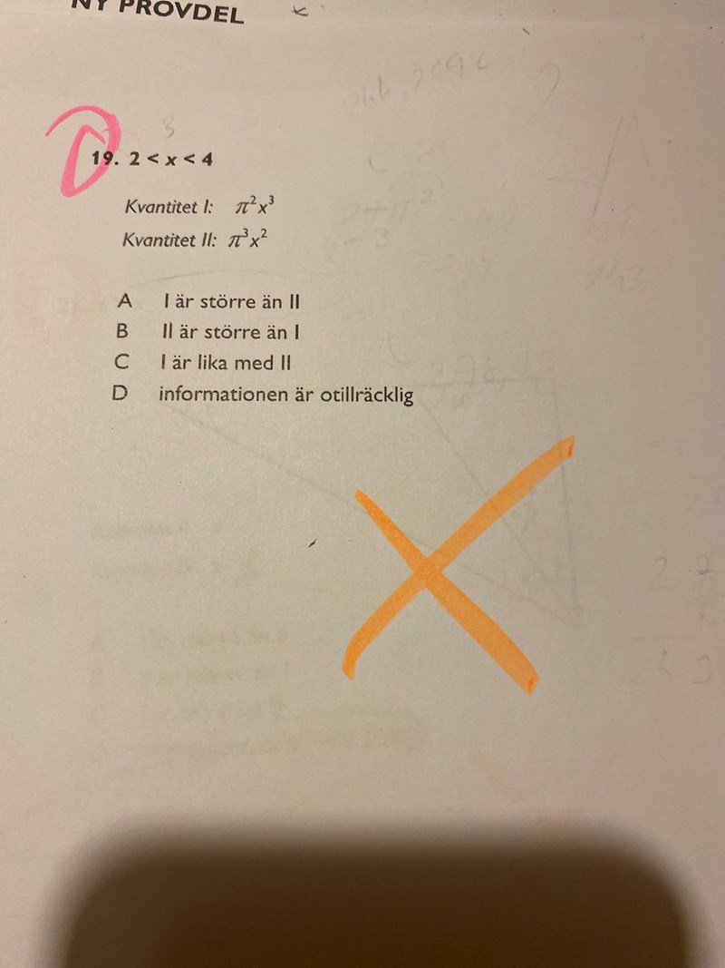 Ja juste tänkte att x=3 men det kan ju vara alltifrån 2,1 ; 3,14 eller 3,9. Juste nu förstår jag bättre. Men när du väljer att dividera med Kva (2) som täljare och Kva (1) som nämnare, är det något specifik syfte bakom det, eller blir det samma princip när jag byter plats på dem dvs att ha Kva (1) som täljare och Kva (2) som nämnare. Det blir väl samma sak? (Och med det menar jag att det fortfarande inte går att avgöra vilken kvantitet som är störst)