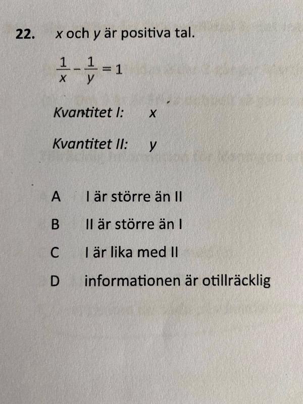 Uppgiften förutsatte att "x och y är positiva tal".