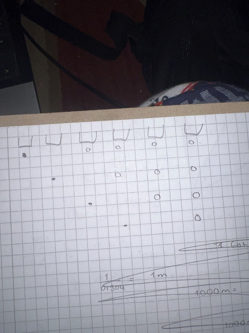 kvantitet 1: antalet sätt att placera de två bollarna i lådorna så att det alltid finns minst en tom låda mellan bollarna. Den röda ska placeras till vänster om den vita bollen.