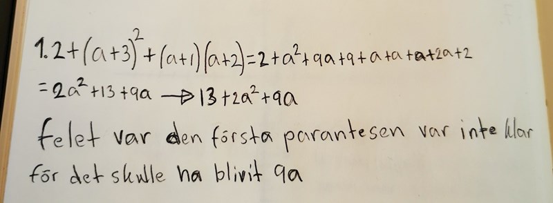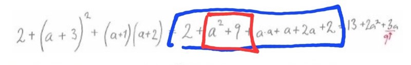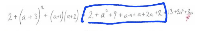 Det betyder att 2+(a+3)2+(a+2)(a+2) = 2+a2+6a+9+a2+3a+2, eller hur?