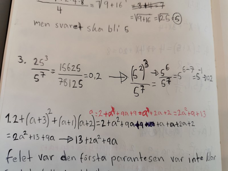 Tips: Jämför det rödmarkerade med din egen uträkning av motsvarande del: