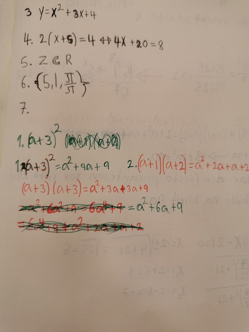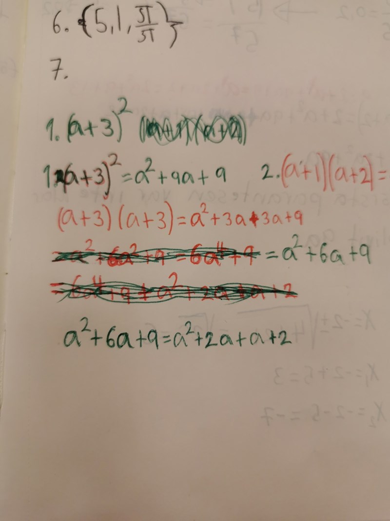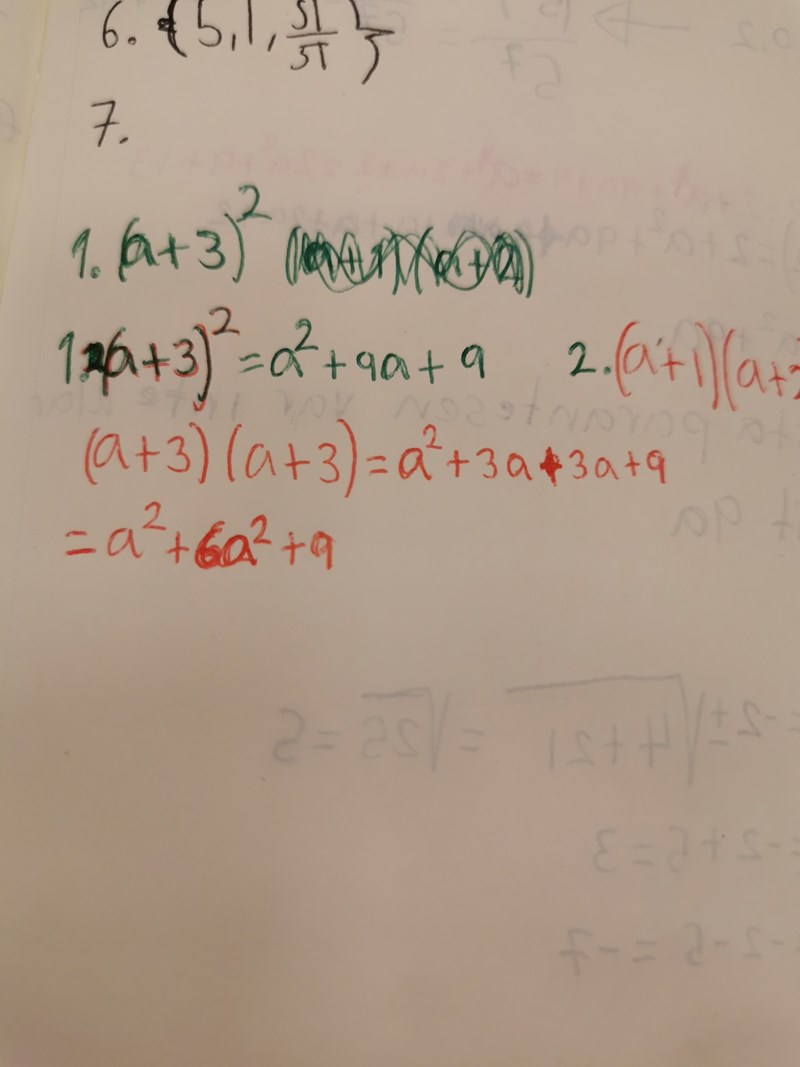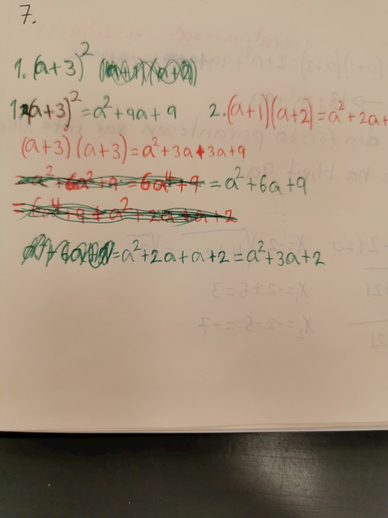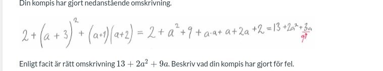 Nu har vi alltså konstaterat att (a+3)2 = a2+6a+9 och att (a+1)(a+2) = a2+3a+2.